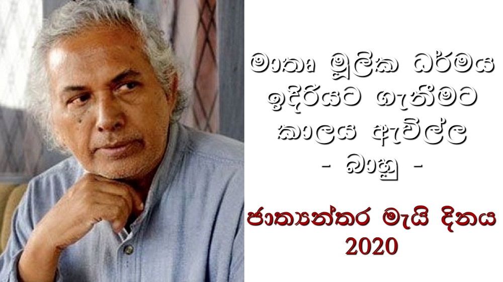 මාතෘ මූලික ධර්මය ඉදිරියට ගැනීමට කාලය ඇවිත් – බාහු – මැයි දිනය 2020 Published 2020-05-01 · Updated 2020-05-02 “මේ කම්කරුවන්ගේ හා නිර්ධනයින්ගේ දිනයේදී අප මතක් කළ යුතුයි, මනුෂ්ය සමාජය ආරම්භයේ පැවති මාතෘ මූලික ධර්මය ඉදිරියට ගැනීමට කාලය ඇවිල්ල තියෙනව කියල. ” ජාත්යන්තර මැයි දිනය වෙනුවෙන් බාහු සහෝදරයා කළ අදහස් දැක්වීම.