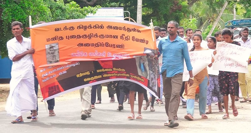 පොලිස් බාධක මැද්දේ ජුලි 17 වැනිදා වෘත්තීය සමිති නායකයන් හා බහුජන සංවිධාන එක්ව කොළඹ පැවැත්වූ විරෝධතාවකදී රජයට බලකර සිටියේ රටපුරා විසිරී ඇති බවට විශ්වාස කෙරෙන විස්සකට අධික සමූහ මිනීවළවල් සම්බන්ධ විමර්ශන ආරම්භ කරන ලෙසයි.