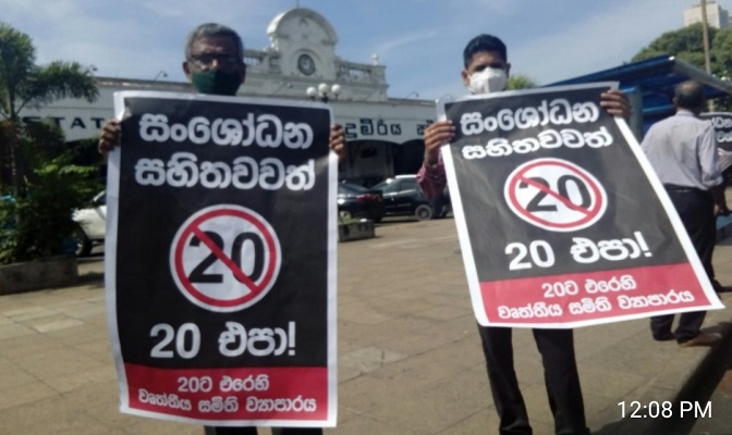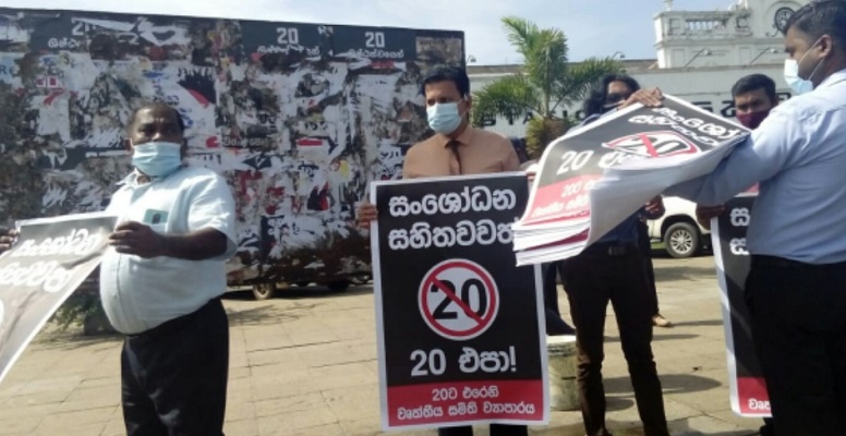 මේ අතර පසුගිය ඔක්තෝම්බර් 16 දින ’20ට එරෙහි වෘත්තීය සමිති ව්යාපාරය විසින්’, “සංශෝධන සහිතවවත් 20 එපා” යන තේමාව යටතේ විරෝධතාවය දැක්වීමක් සහ පෝස්ටර් ඇලවීමක් සංවිධානය කර තිබුනි.